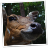 The name nilgai comes from the Indian words nil which means blue, and gai which means “cow”. An adult nilgai stands about 5 feet tall at the top of the shoulder and weighs up to 600 pounds. Unlike other antelope, the male and female nilgai look physically different at adulthood. This is called sexual dimorphism. When fully mature, a nilgai bull will be a smokey charcoal color with black and white markings on their throat, mane, and legs. They also have small straight horns measuring around 7 inches. Nilgai cows do not usually grow horns, and remain a light brown color with the same black and white markings throughout their life.